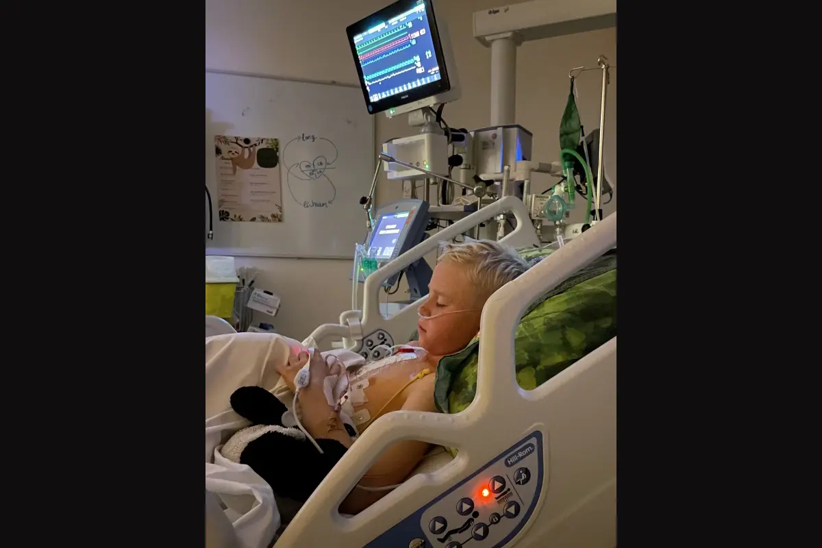 Justin zat net in groep 7 toen hij geopereerd werd. Een leeftijd waarop je alles heel bewust meemaakt. Hij was bang maar ook nieuwsgierig naar wat er precies zou gaan gebeuren. Die duidelijkheid gaf hem ook rust om het te accepteren. Maar de ingreep blijft heel intens. "Het is een moment dat niet te beschrijven valt. Met angst en verdriet namen we afscheid van Justin. Natuurlijk hadden we veel vertrouwen in de kinderhartchirurg, maar toch waren we enorm bang. De confrontatie na de operatie was heftig. Daar lag onze zoon, aan de beademing op de IC. Dit beeld zal nooit meer van mijn netvlies verdwijnen. Overal infuusslangen, twee grote slangen staken uit zijn borstkas, alles piepte en deed. Onze kleine man zo kwetsbaar en zo sterk", aldus zijn moeder Femke.