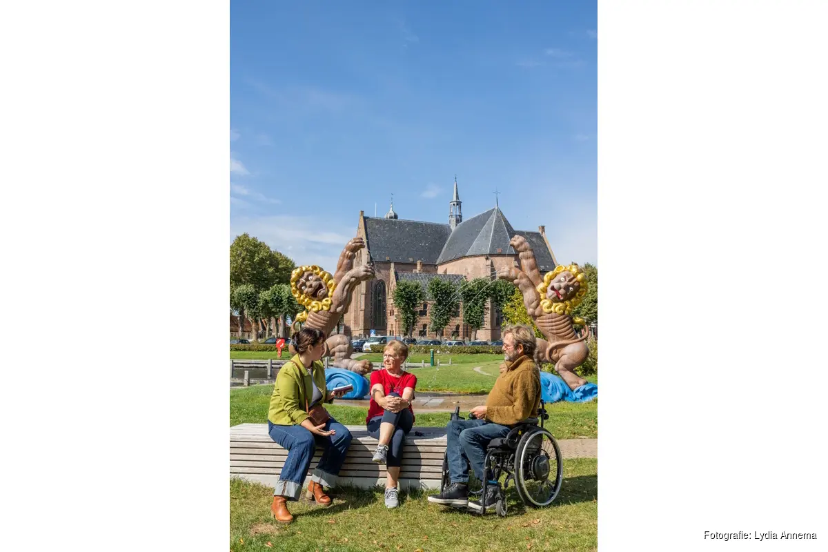 In Workum vertellen de buurtjes Jannie Walta (77) en Gerben But (54) over De woeste Leeuwen, ontworpen door de Britse kunstenaar Cornelia Parker. Vanaf hun huizen aan de overkant van het water kijken ze dagelijks uit op de twee houten leeuwen die elkaar aankijken en waterstralen over en weer spuiten.